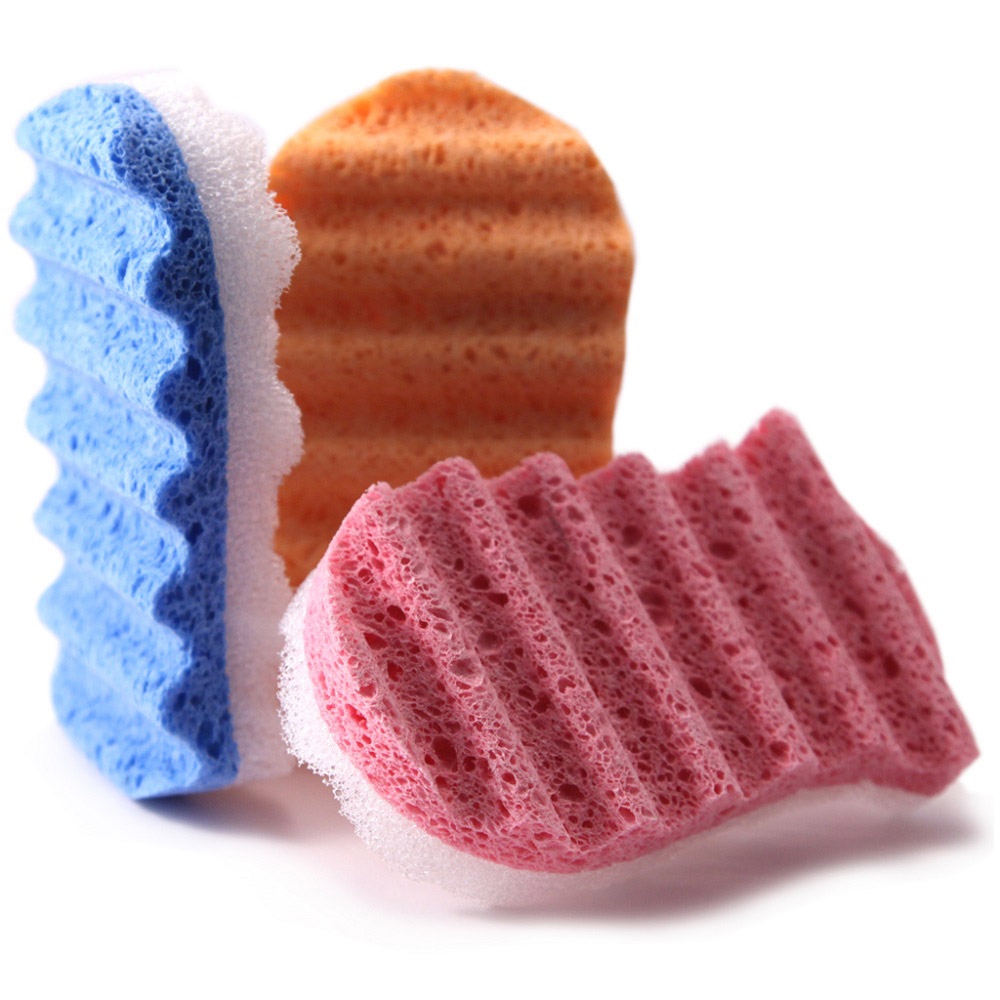 ორმაგი მოქმედების ღრუბელი, ერთი რბილი მხარე კანის ნაზად გასუფთავებისთვის და ერთი ამქერცლავი მხარე სკრაბისთვის და კანის მსუბუქი აქერცვლისთვის. ტესტირებულია დერმატოლოგიურად.