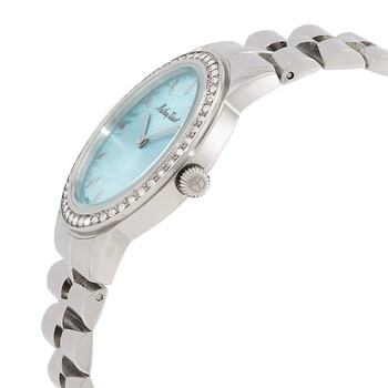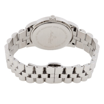 Stainless steel case with a stainless steel bracelet. Fixed stainless steel bezel set with zirconia crystals. Blue dial with silver-tone hands and index hour markers. Dial Type: Analog. Ronda Crystal 1062 quartz movement. Scratch resistant mineral crystal. Pull / push crown. Solid case back. Round case shape. Case size: 32 mm. Deployment clasp with a push button release. Water resistant at 50 meters / 165 feet. Functions: hour, minute. Additional Info: zirconia. Artemis Series. Casual watch style. Watch label: Swiss Made. Mathey-Tissot Artemis Quartz Blue Dial Ladies Watch D10860AQBU.