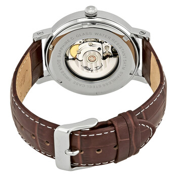 Stainless steel case with a brown leather strap. Fixed stainless steel bezel. White dial with silver-tone hands and Arabic numeral hour markers. Minute markers around the outer rim. Dial Type: Analog. Date display at the 3 o'clock position. STP caliber STP1-11 automatic movement, based upon ETA 2824-2, containing 26 Jewels, bitting at 28800 vph, and has a power reserve of approximately 44 hours. Scratch resistant mineral crystal. Pull / push crown. Transparent case back. Round case shape. Case size: 41 mm. Case thickness: 11 mm. Band width: 17 mm. Tang clasp. Water resistant at 50 meters / 165 feet. Functions: date, hour, minute, second. Casual watch style. Watch label: Swiss Made. Mathey-Tissot City Automatic White Dial Men's Watch HB611251ATAG.