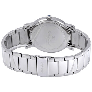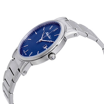 Stainless steel case with a stainless steel bracelet. Fixed stainless steel bezel. Blue dial with silver-tone hands and index hour markers. Minute markers around the outer rim. Dial Type: Analog. Date display at the 3 o'clock position. Ronda caliber 505 quartz movement. Scratch resistant sapphire crystal. Pull / push crown. Solid case back. Round case shape. Case size: 42 mm. Case thickness: 5 mm. Band width: 22 mm. Fold over clasp with a push button release. Water resistant at 50 meters / 165 feet. Functions: date, hour, minute, second. City Metal Series. Casual watch style. Watch label: Swiss Movt. Mathey-Tissot City Metal Blue Dial Men's Watch HB611251MABU.