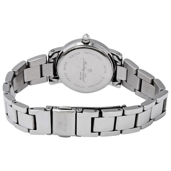 Stainless steel case with a stainless steel bracelet. Fixed stainless steel bezel. Brown dial with silver-tone hands and index hour markers. Minute markers around the outer rim. Dial Type: Analog. Date display at the 3 o'clock position. Ronda caliber 775 quartz movement. Scratch resistant mineral crystal. Pull / push crown. Solid case back. Round case shape. Case size: 28 mm. Case thickness: 3 mm. Fold over clasp with a push button release. Water resistant at 30 meters / 100 feet. Functions: date, hour, minute, second. Casual watch style. Watch label: Swiss Movt. Mathey-Tissot City Metal Brown Dial Ladies Watch D31186MAM.