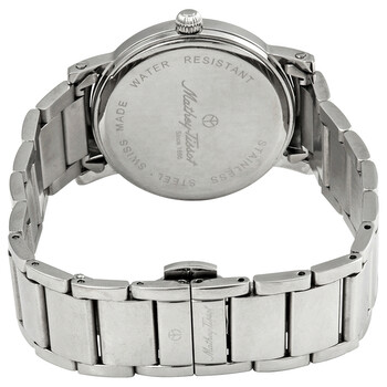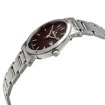 Silver-tone stainless steel case with a silver-tone stainless steel bracelet. Fixed silver-tone stainless steel bezel. Brown dial with silver-tone hands and index hour markers. Minute markers around the outer rim. Dial Type: Analog. Date display at the 3 o'clock position. Quartz movement. Scratch resistant mineral crystal. Pull / push crown. Solid case back. Round case shape, case size: 42 mm, case thickness: 4 mm. Deployment clasp. Water resistant at 30 meters / 100 feet. Functions: date, hour, minute, second. Casual watch style. Watch label: Swiss Made. Mathey-Tissot City Metal Brown Dial Men's Watch HB611251MAM.