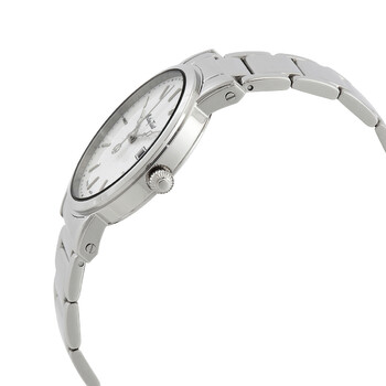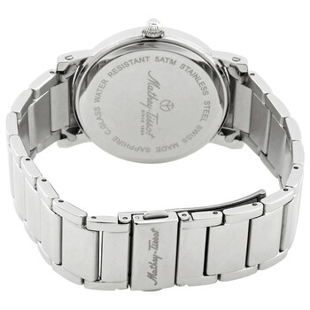 Stainless steel case with a stainless steel bracelet. Fixed stainless steel bezel. White dial with black hands and index hour markers. Minute markers around the outer rim. Dial Type: Analog. Date display at the 3 o'clock position. Quartz movement. Scratch resistant sapphire crystal. Pull / push crown. Solid case back. Round case shape. Case size: 38 mm. Case thickness: 4 mm. Deployment clasp with a push button release. Water resistant at 30 meters / 100 feet. Functions: date, hour, minute, second. City Metal Series. Casual watch style. Watch label: Swiss Made. Mathey-Tissot City Metal Quartz White Dial Ladies Watch H611251MAI.