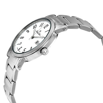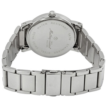 Stainless steel case with a stainless steel bracelet. Fixed stainless steel bezel. White dial with silver-tone hands and Arabic numeral hour markers. Minute markers around the outer rim. Dial Type: Analog. Date display at the 3 o'clock position. Ronda caliber 505 quartz movement. Scratch resistant mineral crystal. Pull / push crown. Solid case back. Round case shape. Case size: 38 mm. Case thickness: 7.3 mm. Band width: 19 mm. Deployment clasp. Water resistant at 30 meters / 100 feet. Functions: date, hour, minute, second. Casual watch style. Watch label: Swiss Made. Mathey-Tissot City White Dial Men's Watch H611251MAG.