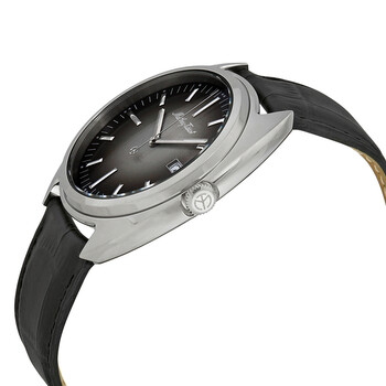 Stainless steel case with a black leather strap. Fixed stainless steel bezel. Brown dial with luminous silver-tone hands and index hour markers. Minute markers around the outer rim. Dial Type: Analog. Luminescent hands and markers. Date display at the 3 o'clock position. Ronda Caliber 715 quartz movement. Scratch resistant sapphire coated crystal. Pull / push crown. Solid case back. Cushion case shape. Case size: 42 mm. Case thickness: 11.8 mm. Band width: 22 mm. Fold over clasp. Water resistant at 50 meters / 165 feet. Functions: date, hour, minute, second. Additional Info: limited edition. Eric Giroud 1886 Series. Casual watch style. Watch label: Swiss Made. Mathey-Tissot Eric Giroud 1886 Brown Dial Men's Watch EG1886AM.