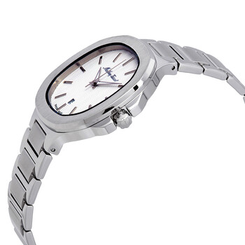 Stainless steel case with a stainless steel bracelet. Fixed stainless steel bezel. White dial with luminous silver-tone hands and index hour markers. Dial Type: Analog. Luminescent hands. Ronda caliber 505 quartz movement. Scratch resistant sapphire coated glass crystal. Pull / push crown. Solid case back. Cushion case shape. Case size: 42 mm. Case thickness: 8 mm. Band width: 22 mm. Fold over clasp with a push button release. Water resistant at 50 meters / 165 feet. Functions: date, hour, minute, second. Casual watch style. Watch label: Swiss Movt. Mathey-Tissot Evasion White Dial Stainless Steel Men's Watch H152AI.