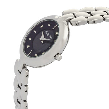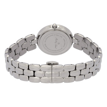Silver-tone stainless steel case and bracelet. Fixed silver-tone stainless steel bezel. Black dial with silver-tone hands and index hour markers. Dial Type: Analog. Ronda Caliber 763 quartz movement. Scratch resistant mineral crystal. Pull / push crown. Solid case back. Round case shape, case size: 30 mm. Deployment with push button release clasp. Water resistant at 50 meters / 165 feet. Functions: hour, minute, second. Additional Info: mother of pearl dial. Farah Series. Casual watch style. Watch label: Swiss Made. Mathey-Tissot Farah Quartz Black Dial Ladies Watch D956AN.