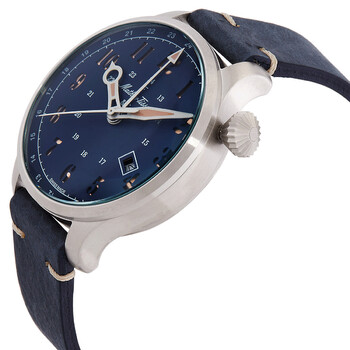 Silver-tone stainless steel case with a blue leather strap. Fixed silver-tone stainless steel bezel. Blue dial with silver-tone hands and Arabic numeral hour markers. Dial Type: Analog. Date display at the 4 o'clock position. ETA Caliber 293 automatic movement. Scratch resistant sapphire crystal. Round case shape, case size: 44 mm. Water resistant at 50 meters / 165 feet. Functions: GMT, second time zone, date, hour, minute, second. Gmt 293 Series. Watch label: Swiss Made. Mathey-Tissot GMT 293 Automatic Blue Dial Men's Watch H123AN.