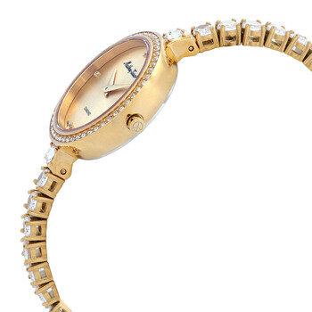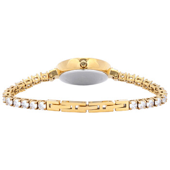 Gold-tone stainless steel case with a silver-tone stainless steel bracelet decorated with swarowski crystals. Fixed gold-tone bezel with crystal set. Gold dial with gold-tone hands and diamond hour markers. Dial Type: Analog. Ronda Caliber 762 quartz movement. Scratch resistant mineral crystal. Pull / push crown. Solid case back. Round case shape, case size: 28 mm, case thickness: 5 mm. Jewelry clasp. Water resistant at 50 meters / 165 feet. Functions: hour, minute. Infinity Series. Dress watch style. Watch label: Swiss Movt. Mathey-Tissot Infinity Quartz Diamond Crystal Gold Dial Ladies Watch D986SPDI.