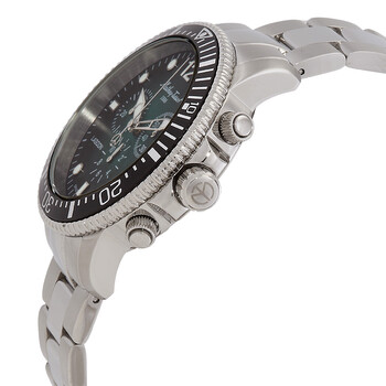 Silver-tone stainless steel case and bracelet. Uni-directional rotating black bezel. Green dial with silver-tone hands and Arabic numeral & index hour markers. Minute markers around the outer rim. Dial Type: Analog. Luminescent hands and markers. Date display at the 4 o'clock position. Chronograph - three sub-dials displaying: 60 second, 30 minute and 12 hour. Ronda Caliber 5030.D quartz movement. Scratch resistant mineral crystal. Screw down crown. Solid case back. Round case shape, case size: 42.5 mm. Band width: 22 mm. Fold over clasp. Water resistant at 100 meters / 330 feet. Functions: chronograph, date, hour, minute, small second. Lagoon Series. Casual watch style. Watch label: Swiss Made. Mathey-Tissot Lagoon Chronograph Quartz Green Dial Men's Watch H123CHAV.