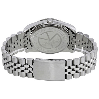 Silver-tone stainless steel case and bracelet. Fixed silver-tone stainless steel bezel. Black dial with luminous silver-tone hands and index hour markers. Minute markers around the outer rim. Dial Type: Analog. Luminescent hands and markers. Date display at the 3 o'clock position. Ronda Caliber 585 quartz movement. Scratch resistant mineral crystal. Pull / push crown. Solid case back. Round case shape, case size: 40 mm, case thickness: 5 mm. Band width: 22 mm. Fold over clasp. Water resistant at 50 meters / 165 feet. Functions: date, hour, minute, second. Mathey IIi Series. Casual watch style. Watch label: Swiss Made. Mathey-Tissot Mathey III Quartz Black Dial Men's Watch H810AN.