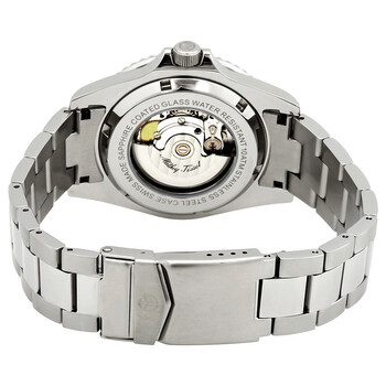 Stainless steel case with a stainless steel bracelet. Uni-directional rotating stainless steel bezel with a green ring. Green dial with luminous silver-tone Breguet-style shape hands and dot hour markers. Minute markers around the outer rim. Dial Type: Analog. Luminescent hands. Date display at the 3 o'clock position. Automatic movement. Scratch resistant sapphire crystal. Screw down crown. Solid case back. Round case shape. Case size: 42 mm. Case thickness: 10 mm. Band width: 22 mm. Fold over clasp. Water resistant at 100 meters / 330 feet. Functions: date, hour, minute, second. Mathey Vintage Series. Casual watch style. Watch label: Swiss Made. Mathey-Tissot Mathey Vintage Automatic Green "Hulk" Dial Men's Watch H9010ATV.