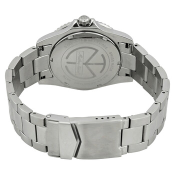 Silver-tone stainless steel case and bracelet. Uni-directional rotating black-plated stainless steel showing 24 hour markers bezel. Black dial with luminous gold-tone hands and dot hour markers. Minute markers around the outer rim. Dial Type: Analog. Luminescent hands and markers. Date display at the 3 o'clock position. Ronda Caliber 505 quartz movement. Scratch resistant mineral crystal. Screw down crown. Solid case back. Round case shape, case size: 40 mm, case thickness: 10 mm. Band width: 20 mm. Fold over clasp with a safety release. Water resistant at 50 meters / 165 feet. Functions: date, hour, minute, second. Mathey Vintage Series. Casual watch style. Watch label: Swiss Made. Mathey-Tissot Mathey Vintage Quartz Black Dial Men's Watch H900AN.