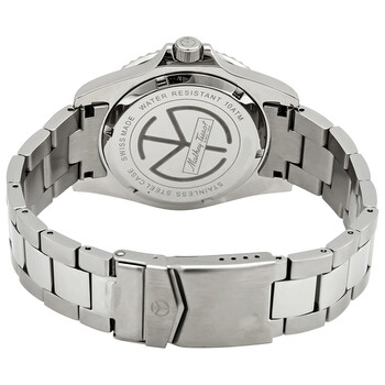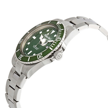 Stainless steel case with a stainless steel bracelet. Uni-directional rotating stainless steel bezel with a green ring. Green dial with luminous silver-tone Breguet-style shape hands and dot hour markers. Minute markers around the outer rim. Dial Type: Analog. Luminescent hands. Date display at the 3 o'clock position. Quartz movement. Scratch resistant sapphire crystal. Screw down crown. Solid case back. Round case shape. Case size: 42 mm. Case thickness: 10 mm. Band width: 20 mm. Fold over clasp. Water resistant at 100 meters / 330 feet. Functions: date, hour, minute, second. Mathey Vintage Series. Casual watch style. Watch label: Swiss Made. Mathey-Tissot Mathey Vintage Quartz Green Dial Men's Watch H9010AV.