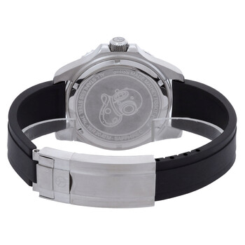 Silver-tone stainless steel case with a black silicone strap. Uni-directional rotating black bezel. Black dial with silver-tone hands and Arabic numeral & index hour markers. Minute markers around the outer rim. Dial Type: Analog. Luminescent hands and markers. Date display at the 3 o'clock position. Ronda Caliber 505 quartz movement. Scratch resistant mineral crystal. Screw down crown. Solid case back. Round case shape, case size: 42 mm. Fold over clasp with a safety release. Water resistant at 200 meters / 660 feet. Functions: date, hour, minute, second. Mathy Design Series. Casual watch style. Watch label: Swiss Made. Mathey-Tissot Mathy Design Quartz Black Dial Men's Watch H909AN.
