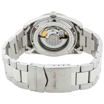 Stainless steel case with a stainless steel bracelet. Fixed stainless steel bezel. Blue dial with luminous silver-tone hands and index hour markers. Minute markers around the outer rim. Dial Type: Analog. Luminescent hands and markers. Date display at the 3 o'clock position. STP caliber STP1-11 automatic movement, based upon ETA 2824-2, containing 26 Jewels, bitting at 28800 vph, and has a power reserve of approximately 44 hours. Scratch resistant mineral crystal. Pull / push crown. Transparent case back. Round case shape. Case size: 42 mm. Case thickness: 9 mm. Band width: 20 mm. Fold over clasp. Water resistant at 50 meters / 165 feet. Functions: date, hour, minute, second. Mathy I Automatic Series. Casual watch style. Watch label: Swiss Made. Mathey-Tissot Mathy I Automatic Blue Dial Men's Watch H1450ATB.
