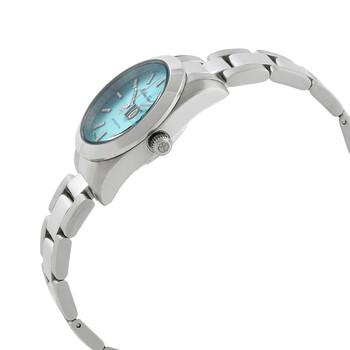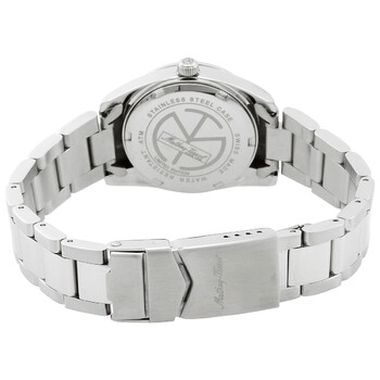 Stainless steel case with a stainless steel bracelet. Fixed stainless steel bezel. Blue dial with luminous silver-tone hands and index hour markers. Arabic numeral minute markers (at 5 minute intervals). Minute markers around the outer rim. Dial Type: Analog. Luminescent hands and markers. Date display at the 3 o'clock position. Ronda caliber 585 quartz movement. Scratch resistant mineral crystal. Pull / push crown. Solid case back. Round case shape. Case size: 30 mm. Case thickness: 7 mm. Band width: 16 mm. Fold over clasp. Water resistant at 50 meters / 165 feet. Functions: date, hour, minute, second. Mathy I Le Series. Casual watch style. Watch label: Swiss Made. Mathey-Tissot Mathy I LE Quartz Blue Dial Ladies Watch D451BU.