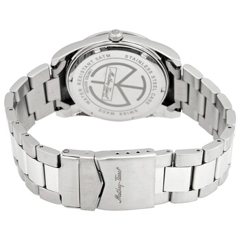Stainless steel case with a stainless steel bracelet. Fixed stainless steel bezel. Pink dial with luminous silver-tone hands and index hour markers. Arabic numeral minute markers (at 5 minute intervals). Minute markers around the outer rim. Dial Type: Analog. Luminescent hands and markers. Date display at the 3 o'clock position. Ronda caliber 505 quartz movement. Scratch resistant mineral crystal. Pull / push crown. Solid case back. Round case shape. Case size: 42 mm. Case thickness: 11 mm. Band width: 22 mm. Fold over clasp. Water resistant at 50 meters / 165 feet. Functions: date, hour, minute, second. Mathy I Le Series. Casual watch style. Watch label: Swiss Made. Mathey-Tissot Mathy I LE Quartz Pink Dial Men's Watch H451PK.