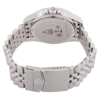 Silver-tone stainless steel case and bracelet. Uni-directional rotating black stainless steel bezel. Black dial with silver-tone hands and index hour markers. Minute markers around the outer rim. Dial Type: Analog. Luminescent hands and markers. Date display at the 3 o'clock position. Quartz movement. Scratch resistant mineral crystal. Screw down crown. Solid case back. Round case shape, case size: 42 mm. Fold over clasp with a safety release. Water resistant at 100 meters / 330 feet. Functions: date, GMT, second time zone, hour, minute, second. Mathy Vintage Gmt Series. Casual watch style. Watch label: Swiss Made. Mathey-Tissot Mathy Vintage GMT Quartz Black Dial Men's Watch H903ANC.
