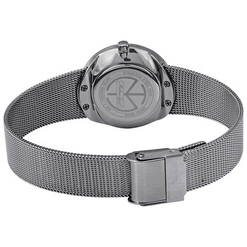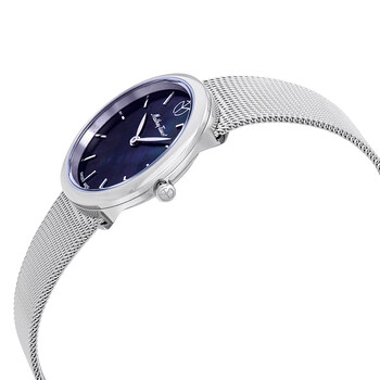 Stainless steel case with a stainless steel mesh bracelet. Fixed stainless steel bezel. Black mother of pearl dial with silver-tone hands and index hour markers. Dial Type: Analog. Ronda 762 quartz movement. Scratch resistant sapphire crystal. Pull / push crown. Solid case back. Round case shape. Case size: 30 mm. Case thickness: 5.5 mm. Band width: 16 mm. Fold over slip through clasp. Water resistant at 50 meters / 165 feet. Functions: hour, minute. Dress watch style. Watch label: Swiss Made. Mathey-Tissot Milly Black Mother of Pearl Dial Ladies Watch D403AN.