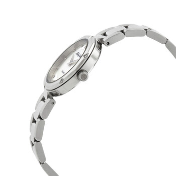 Stainless steel case with a stainless steel bracelet. Fixed stainless steel bezel set with diamonds. Silver (mother of pearl center) dial with silver-tone hands and diamond hour markers. Dial Type: Analog. Ronda caliber 762 quartz movement. Scratch resistant mineral crystal. Pull / push crown. Solid case back. Round case shape. Case size: 32 mm. Fold over clasp. Water resistant at 50 meters / 165 feet. Functions: hour, minute. Additional Info: diamond. Molly Series. Dress watch style. Watch label: Swiss Made. Mathey-Tissot Molly Quartz Diamond Ladies Watch D1087AQI.