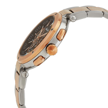 Mathey-Tissot Neptune Chrono Quartz Black Dial Men's Watch H912CHRN Silver-tone stainless steel case with a two-tone (silver-tone and rose gold-tone) stainless steel bracelet. Fixed rose gold-tone stainless steel bezel. Black dial with rose gold-tone hands and index hour markers. Minute markers around the outer rim. Dial Type: Analog. Luminescent hands and markers. Date display at the 4 o'clock position. Chronograph - three sub-dials displaying: 60 second, 30 minute and 12 hour. Ronda Caliber 5030.D quartz movement. Scratch resistant mineral crystal. Pull / push crown. Solid case back. Round case shape, case size: 42 mm. Fold over clasp with a safety release. Water resistant at 50 meters / 165 feet. Functions: chronograph, date, hour, minute, small second. Neptune Chrono Series. Casual watch style. Watch label: Swiss Made. Mathey-Tissot Neptune Chrono Chronograph Quartz Black Dial Men's Watch H912CHRN.