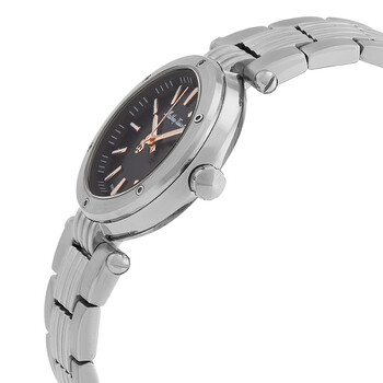Mathey-Tissot Neptune Quartz Black Dial Ladie's Watch D912RRN Silver-tone stainless steel case and bracelet. Fixed silver-tone stainless steel bezel. Black dial with rose gold-tone hands and index hour markers. Minute markers around the outer rim. Dial Type: Analog. Luminescent hands and markers. Date display at the 3 o'clock position. Ronda Caliber 585 quartz movement. Scratch resistant mineral crystal. Pull / push crown. Solid case back. Round case shape, case size: 32 mm. Fold over clasp with a safety release. Water resistant at 50 meters / 165 feet. Functions: date, hour, minute, second. Neptune Series. Casual watch style. Watch label: Swiss Made. Mathey-Tissot Neptune Quartz Black Dial Ladies Watch D912RRN.