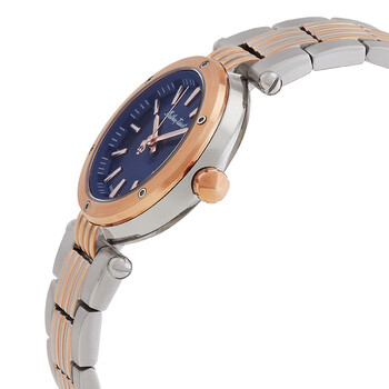 Mathey-Tissot Neptune Quartz Blue Dial Ladie's Watch D912RBU Silver-tone stainless steel case with a two-tone (silver-tone and rose gold-tone) stainless steel bracelet. Fixed rose gold-tone stainless steel bezel. Blue dial with rose gold-tone hands and index hour markers. Minute markers around the outer rim. Dial Type: Analog. Luminescent hands and markers. Date display at the 3 o'clock position. Ronda Caliber 585 quartz movement. Scratch resistant mineral crystal. Pull / push crown. Solid case back. Round case shape, case size: 32 mm. Fold over clasp with a safety release. Water resistant at 50 meters / 165 feet. Functions: date, hour, minute, second. Neptune Series. Casual watch style. Watch label: Swiss Made. Mathey-Tissot Neptune Quartz Blue Dial Ladies Watch D912RBU.