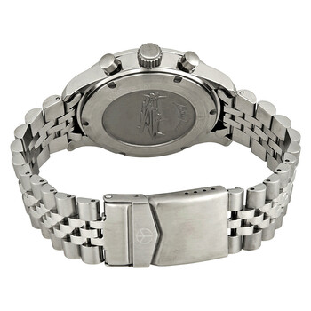 Stainless steel case with a stainless steel bracelet. Fixed stainless steel bezel. Red dial with luminous silver-tone hands and index hour markers. Minute markers around the outer rim. Dial Type: Analog. Luminescent hands and markers. Date display between the 4 and 5 o'clock positions. Chronograph - two sub-dials displaying: 60 second and 30 minute. Day of the week sub-dial. Ronda caliber Z60 quartz movement. Scratch resistant sapphire glass crystal. Pull / push crown. Solid case back. Round case shape. Case size: 42 mm. Case thickness: 11 mm. Band width: 20 mm. Butterfly clasp. Water resistant at 50 meters / 165 feet. Functions: chronograph, date, day, hour, minute, small second. Type 22 Series. Casual watch style. Watch label: Swiss Made. Mathey-Tissot Type 22 Chronograph Red Dial Men's Watch H1822CHAR.