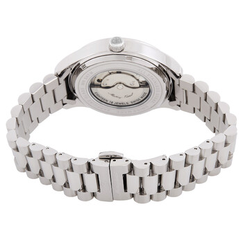 Silver-tone stainless steel case and bracelet. Fixed silver-tone stainless steel bezel. Black dial with silver-tone hands and index hour markers. Minute markers around the outer rim. Dial Type: Analog. Luminescent hands. Date display at the 3 o'clock position. Automatic movement. Scratch resistant sapphire crystal. Pull / push crown. Transparent case back. Round case shape, case size: 42 mm, case thickness: 11.5 mm. Band width: 20 mm. Fold over clasp with a safety release. Water resistant at 50 meters / 165 feet. Functions: date, hour, minute, second. Urban Auto Series. Casual watch style. Watch label: Swiss Made. Mathey-Tissot Urban Auto Automatic Black Dial Men's Watch H411ATAN.