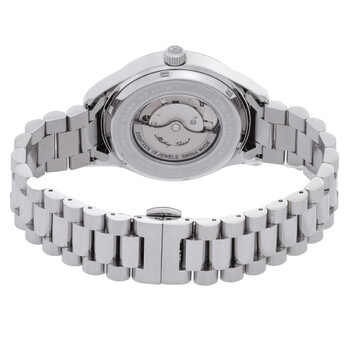 Silver-tone stainless steel case and bracelet. Fixed silver-tone stainless steel bezel. Blue dial with silver-tone hands and index hour markers. Minute markers around the outer rim. Dial Type: Analog. Luminescent hands. Date display at the 3 o'clock position. Automatic movement. Scratch resistant sapphire crystal. Pull / push crown. Transparent case back. Round case shape, case size: 42 mm. Fold over clasp with a safety release. Water resistant at 50 meters / 165 feet. Functions: date, hour, minute, second. Urban Auto Series. Casual watch style. Watch label: Swiss Made. Mathey-Tissot Urban Auto Automatic Blue Dial Men's Watch H411ATABU.