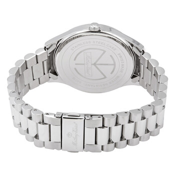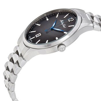 Stainless steel case with a stainless steel bracelet. Fixed stainless steel bezel. Black dial with blue leaf-style hands and index hour markers. An Arabic numeral appears at the 12 o'clock position. Minute markers around the outer rim. Dial Type: Analog. Luminescent hands and markers. Date display above the 6 o'clock position. Ronda caliber 515.H6 quartz movement. Scratch resistant sapphire crystal. Pull / push crown. Solid case back. Round case shape. Case size: 42 mm. Case thickness: 8 mm. Band width: 20 mm. Fold over clasp with a push button release. Water resistant at 50 meters / 165 feet. Functions: date, hour, minute, second. Urban Series. Casual watch style. Watch label: Swiss Made. Mathey-Tissot Urban Quartz Black Dial Men's Watch H411MAN.