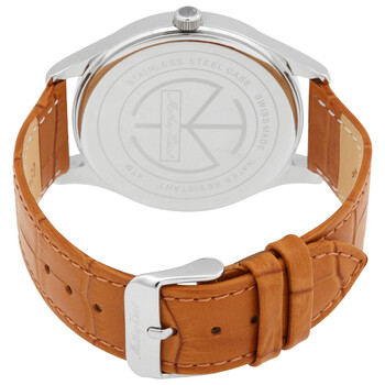Silver-tone stainless steel case with a brown genuine leather strap. Fixed silver-tone stainless steel bezel. Orange dial with blue hands and Arabic numeral & index hour markers. Minute markers around the outer rim. Dial Type: Analog. Luminescent hands and markers. Date display at the 6 o'clock position. Ronda Caliber 515.H6 quartz movement. Scratch resistant mineral crystal. Pull / push crown. Solid case back. Round case shape, case size: 42 mm. Tang clasp. Water resistant at 50 meters / 165 feet. Functions: date, hour, minute, second. Urban Series. Casual watch style. Watch label: Swiss Made. Mathey-Tissot Urban Quartz Orange Dial Men's Watch H411SAL.