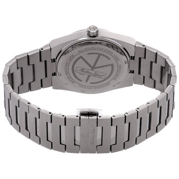 Silver-tone stainless steel case and bracelet. Fixed silver-tone stainless steel bezel. Blue dial with silver-tone hands and index hour markers. Minute markers around the outer rim. Dial Type: Analog. Luminescent hands and markers. Date display at the 3 o'clock position. Ronda Caliber 515 quartz movement. Scratch resistant sapphire crystal. Pull / push crown. Solid case back. Round case shape, case size: 41 mm. Fold over clasp with a safety release. Functions: date, hour, minute, second. Zeus Series. Casual watch style. Watch label: Swiss Made. Mathey-Tissot Zeus Blue Dial Men's Watch H118SK.