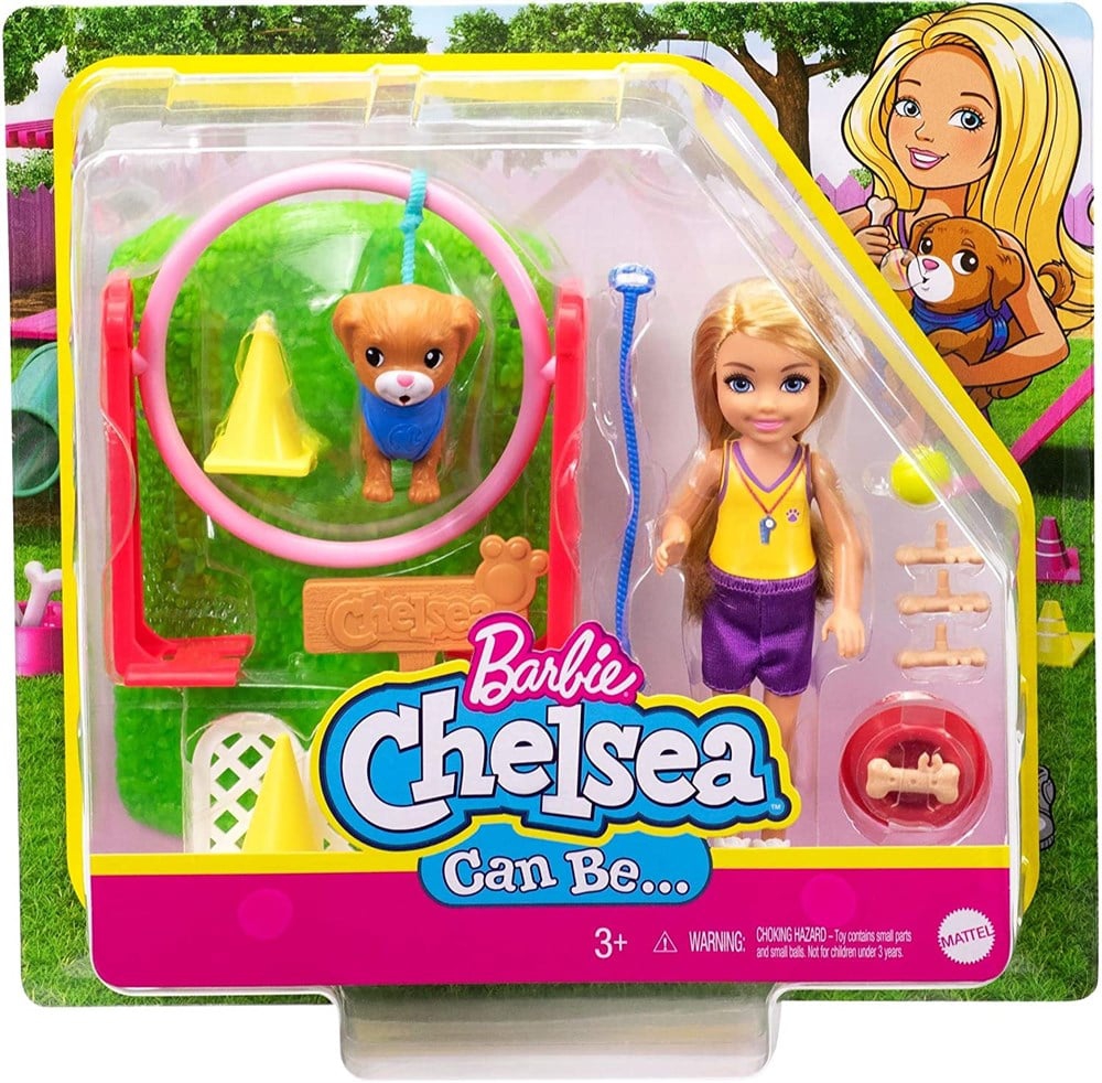 Mattel, Barbie ჩელსის თოჯინა ლეკვით საუკეთესო გასართობია ბავშვებისთვის, რომლებსაც უყვართ ცხოველები და როლური თამაშები. ჩელსის უნდა, რომ ბევრი პროფესია გამოსცადოს ცხოვრებაში და მათ შორის ერთ-ერთია ძაღლების მწვრთნელობა. ნაკრებში შედის ძაღლის სავარჯიშო მოედანი, გადასახტომი რგოლი, კონუსები, ბურთი, წყლის ჯამი, ძაღლის სასუსნავები და საბელი. ასწავლეთ ლეკვს სხვადასხვა ილეთები ჩელსისთან ერთად და გაატარეთ საუკეთესო დრო.