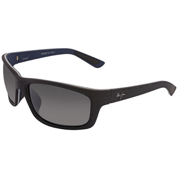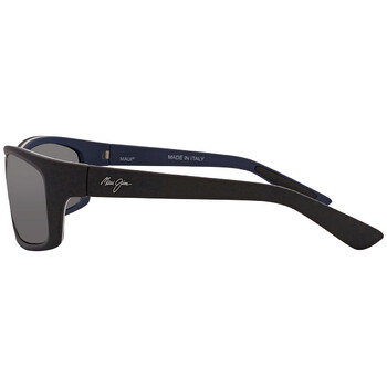 Maui Jim Sunglasses. Series Kanaio Coast. Series number: 766. Color code: 02MD. Shape: Rectangular. Lens Width: 61 mm. Lens Bridge: 17 mm. Arm Length: 127 mm. 100% UV protection. Polarized. Frame Material: Acetate. Frame Color: Matte Soft Black with White and Blue. Lenses Type: Neutral Grey. Rim Style: Full-Rim. UPC/EAN code: 603429050092. Maui Jim Kanaio Coast Neutral Grey Rectangular Men's Sunglasses 766-02MD 61.