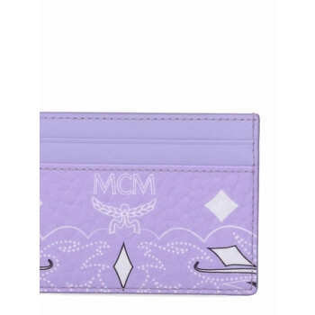 MCM Men's Card Case. SKU: MXADATA07U9. Size: 0.5 x 10.5 x 7.0 cm. MCM Aren Bandana Printed Card Case. This compact monogram card case, inspired by classic Americana, features a bandana-print design with four card slots, a center pocket for cash and receipts, Nappa leather trim, a Visetos monogram canvas body, and a fabric lining.