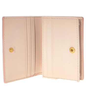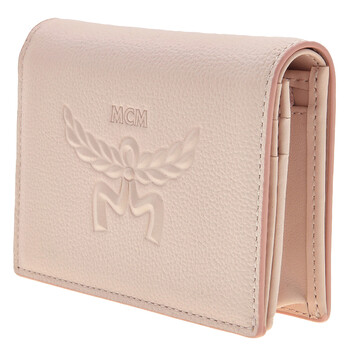 MCM Ladies Wallets. SKU: MYSESAC03P7. Size: 1.2 x 4.3 x 3.3 inches. MCM Embossed Logo Leather Mini Himmel Snap Wallet. The leather wallet features a snap fastening and unfolds to reveal a nappa leather interior with a zip pocket, bill sleeve, multiple card slots, and an embossed MCM logo.
