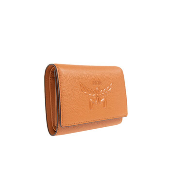 MCM Ladies Wallets. SKU: MYSESAC02CO. Color: Cognac. Size: W 9 cm x L 12 cm. MCM Embossed Logo Small Himmel Trifold Wallet. The ‘Himmel’ folding wallet from MCM is crafted from premium leather and features a snap closure. Designed with a tactile logo on the front, it offers a well-organized interior that includes one bill compartment, a zippered coin pocket, and six card slots. 100% Cow Leather.