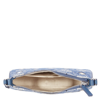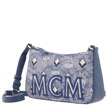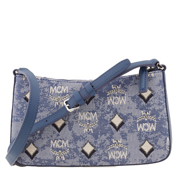 MCM Ladies Shoulder Bag. SKU: MWSBATQ01LU. Barcode: 8809735036719. Color: Blue. Size: 5.1 x 8.7 x 2.0 inches. MCM Ladies Blue Shoulder Bag in Vintage Jacquard Monogram. Crafted from Vintage jacquard monogram fabric and accented with nappa leather trim, this bag features adjustable leather shoulder strap, zip top closure and a main compartment with an interior slip pocket.