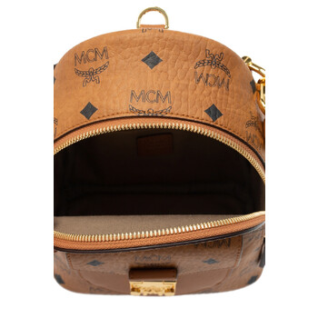 MCM Ladies Backpack. SKU: MWKBSPA01CO. Barcode: 8809675914535. Color: Cognac. Size: 8.3 x 6.7 x 3.7 inches. MCM Ladies Patricia Mini Cognac Backpack. A convertible monogram backpack made in Visetos and nappa leather, this backpack features an allover monogram print, front pocket with Laurel Lock closure, two-way zip closure, single leather top handle, a detachable, adjustable leather straps and finished with 24k gold-plated hardware. The straps for handbag and crossbody conversion.