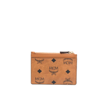 MCM Ladies Card Case. SKU: MYABSPA07CO. Barcode: 8809675916577. Color: Cognac. Size: 3.5 x 4.7 x 0.4 inches. MCM Ladies Patricia Mini Zip Card Case in Visetos. A mini zip card case made in Visetos coated canvas and nappa leather, this card case features an exterior zip pocket, exterior card slot, leather flap with engraved Laurel Lock snap closure, top zip fastening, and finished with 24k gold-plated hardware.