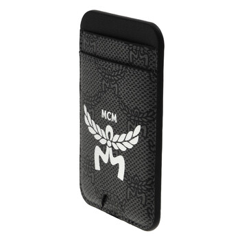Mcm Ladies Card Case. SKU: MXAESAC01ED. Color: Dark Grey. Size: 0.2" x 2.6" x 3.7". Mcm Lauretos Himmel N/S Card Case. This MagSafe-compatible card case showcases the elegant Lauretos monogram, featuring two slots for cards and credentials, natural nappa leather accents, an MCM logo motif at the front, and a fabric lining, with the ability to attach to a smartphone.
