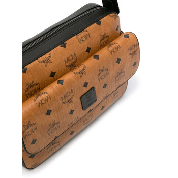 MCM Men's Crossbody. SKU: MMRDSTA01CO. Color: Cognac. Mcm Medium Aren Messenger Bag. The Medium Aren Messenger Bag is a sleek and functional accessory crafted from grained calf leather with an all-over monogram print for a signature look. Designed for effortless organization, it features a front logo plaque, an adjustable shoulder strap, and multiple compartments for easy access to essentials. The front and rear magnetic-fastening pockets offer quick storage, while the spacious main compartment includes an internal zip-fastening pocket and an applique logo for added detail. A full lining ensures durability, and the top two-way zip fastening provides secure closure, making it an ideal everyday bag with a refined edge.