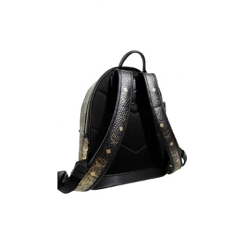 MCM Unisex Backpack. SKU: MMK9AVE18DG. Color: Gold. Size: 32 x 27 x 11 cm. MCM Stark Gradient Visetos Backpack. This stylish bag features the signature Visetos pattern with luxurious faux nappa leather lining. It has a structured design, spacious interior, and edgy pyramid stud print. Key features include a leather top handle, adjustable shoulder straps, a front zipped pocket, and a 2-way zip-around closure.