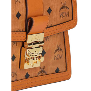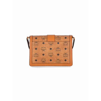 MCM Ladies Shoulder Bag. SKU: MWSCAXT01CO. Color: Cognac. Size: 5.5 x 22 x 15.5 cm. Tracy shoulder bag, crafted from Visetos monogram coated canvas and framed with Vachetta leather, features an adjustable leather strap (96 cm to 112.5 cm), a secure Laurel Lock closure with a leather pull tab, a microfiber suede-lined interior with soft leather sides, an exterior slip pocket, and interior slip and zip pockets.