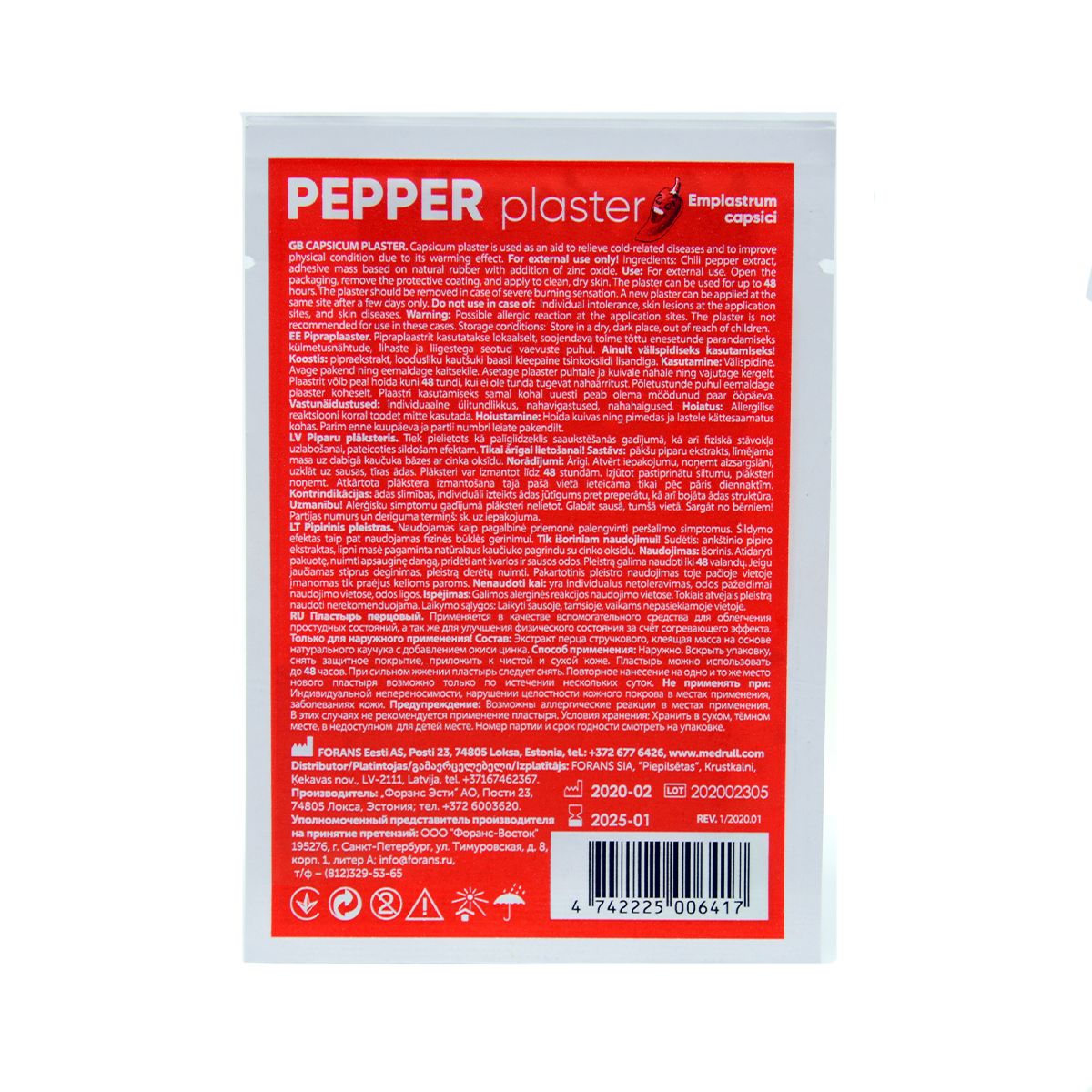 შემადგენლობა: წიწაკის ექსტრაქტი, წებოვანი მასსა დამზადებული ნატურალური კაუჩუკის გამოყენებით, ოქსიცინკის დამატებით.