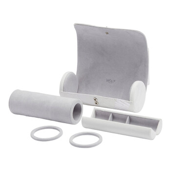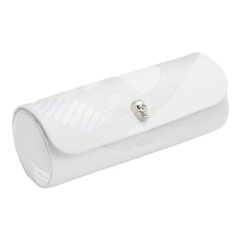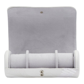 The Memento Mori Watch Roll is hand crafted in smooth vegan leather with skull embroidery, brushed chrome skull hardware and black ultrasuede lining with LusterLoc™ to keep your timepieces protected while traveling. Includes space for 3 watches with 2 Watch Guards and snap closure. The Memento Mori watch roll also includes a secret jewelry capsule (patent pending) inside of the watch roll with three compartments for safe keeping of cufflinks, rings and other smaller valuables.