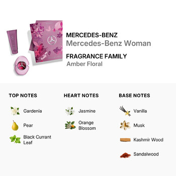 Step into a world of elegance and charm with the Mercedes-Benz Woman Gift Set, a luxurious fragrance collection designed for ladies who embrace confidence and grace. Launched in 2016 by the iconic German brand Mercedes-Benz, this amber floral perfume captures the perfect balance of freshness, warmth, and femininity.