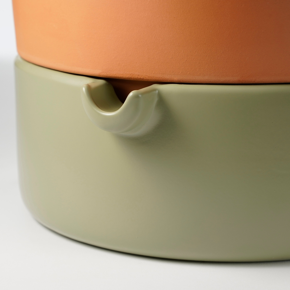 Mica Decorations-ის თანამედროვე თვითმორწყავი ქოთანი იდეალურია, როდესაც გსურთ საკმარისი წყალი მიაწოდოთ თქვენს მცენარეს ზედმეტი ძალისხმევის გარეშე. მას აქვს წყლის რეზერვუარი, რაც უზრუნველყოფს მოსახერხებელ თვითმორწყვის სისტემას. წყალი გროვდება წყალგაუმტარ ქვედა მწვანე ქოთანში. ტერაკოტას ქოთნის შეწოვის ეფექტის გამო, მცენარე საჭიროებისამებრ იღებს საკმარის წყალს. იდეალურია თქვენი მცენარის მოვლისთვის!